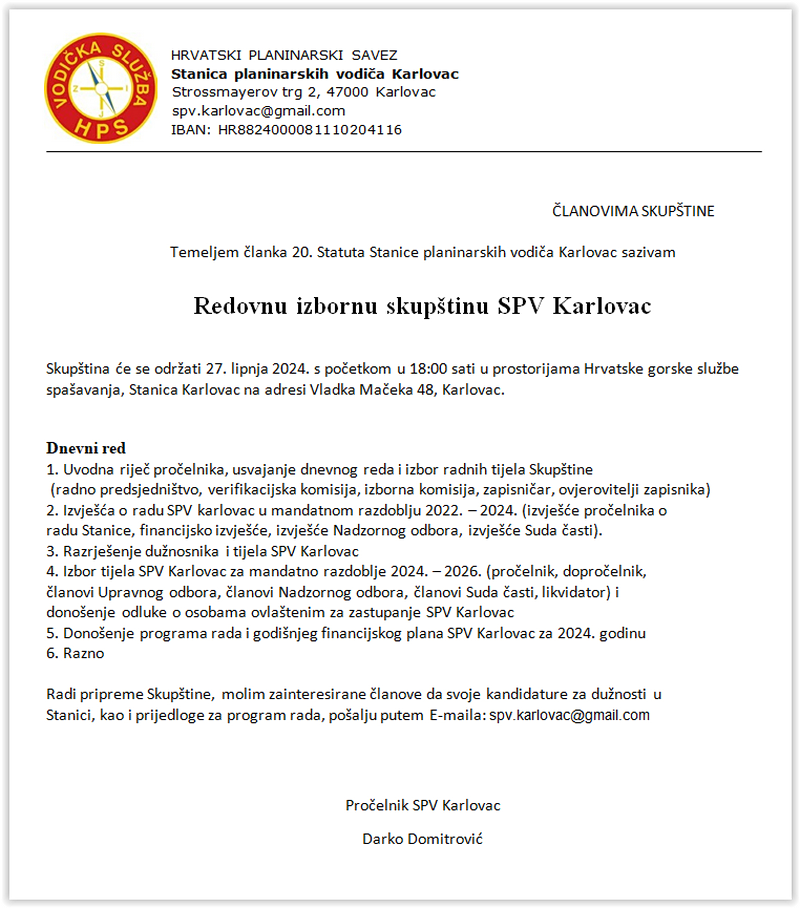 Obavijest o nadolazećim aktivnostima SPV Karlovac do kraja 2024. godine